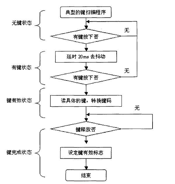 密集架移動列中的鍵盤處理過程,是通過軟件對鍵盤按鍵的1/0信號進行掃描,以判斷按鍵事件。通常密集架一個按鍵掃描程序,要有以下幾個過程: